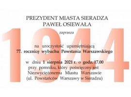 Sieradzanie upamiętnią 77. rocznice wybuchu Powstania Warszawskiego. Charakterystyczny dźwięk syren w godzinie „W” będzie początkiem upamiętnienia powstańczego zrywu w stolicy.
