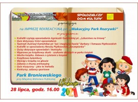Miejska Biblioteka Publiczna i Spółdzielczy Dom Kultury w Sieradzu zapraszają dziś na imprezę pn. „Wakacyjny Park Rozrywki". W programie Quizy konkursy i zabawy związane z opowiadaniami z książek, bajek i teatrzyków. Rywalizacja sportowa indywidualna i zespołowa.