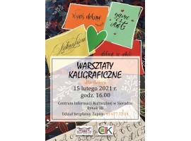 Centrum Informacji Kulturalnej w Sieradzu zaprasza 15 lutego na warsztaty kaligraficzne dla dzieci w wieku od 6 do 12 lat. Zajęcia będą się odbywać zgodnie z wymogami sanitarno-epidemiologicznymi.