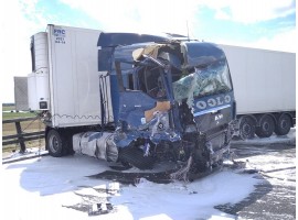 Dwie ciężarówki zderzyły się dziś po południu na drodze ekspresowej S8 pomiędzy węzłami Sieradz Południe a Sieradz Wschód. Do wypadku na "ekspresówce" doszło również na wysokości miejscowości Kuśnie. Trasa w kierunku na Warszawę przez kilka godzin była zablokowana przez co w Sieradzu tworzyły się korki.