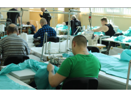 Skazani z Zakładu Karnego w Sieradzu, zatrudnieni w przywięziennym Państwowym Przedsiębiorstwie Odzieżowym, dzień w dzień szyją maseczki i kombinezony ochronne oraz fartuchy.