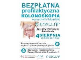 W najbliższą niedzielę (4. sierpnia) Przychodnia Lekarska Eskulap organizuje informacyjny, specjalny dzień otwarty. Specjaliści pomogą wypełnić ankietę i zgłosić do bezpłatnego programu. Akcja trwa od 8:00 do 14:00.