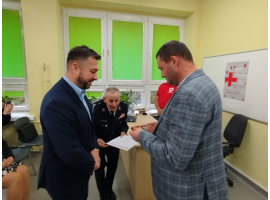 Członkowie Klubu Honorowych Dawców Krwi PCK Strażaków działającego przy OSP Sieradz gościli dziś w Powiatowym Zespole Szkół w tym mieście. Było odznaczenie dla placówki, do tego indywidualne podziękowania oraz pogadanka dla pełnoletniej młodzieży.