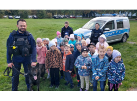 Sieradzką komendę policji odwiedziły dzieci z Przedszkola Nr 15 w Sieradzu. Najmłodsi mogli z bliska zobaczyć pracę policjantów, zasiać za kierownicą radiowozu, obejrzeć pokaz tresury psa służbowego Lupo czy też wykonać sobie pamiątkowe odciski palców. Nie zabrakło rozmów o bezpieczeństwie, co doskonale wpisuje się w trwającą ogólnopolską akcję „Świeć przykładem - Noś odblaski&rdquo