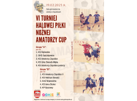 GOKiS Zapolice zaprasza na VI Turniej Halowej Piłki Nożnej Amatorzy Cup. Zawody odbędą się jutro w sali gimnastycznej szkoły w Zapolicach.