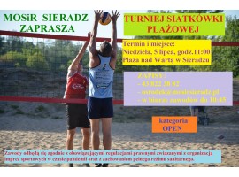 Miejski Ośrodek Sportu i Rekreacji w Sieradzu zaprasza na Turniej Siatkówki Plażowej. Zawody odbędą się w niedzielę na boiskach na plaży nad Wartą. Początek o 11:00. Zgłoszenia należy wysyłać do piątku. W przypadku wolnych miejsc, zapisy będą przyjmowane również tuż przed startem zawodów.