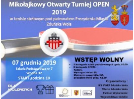 Klub IKS START Zduńska Wola zaprasza na Mikołajkowy Otwarty Turniej OPEN 2019 w tenisa stołowego pod patronatem Prezydenta Miasta Zduńska Wola. Impreza odbędzie się w sobotę w hali Szkoły Podstawowej nr 7 w Zduńskiej Woli. Początek zmagań o 10:00.
