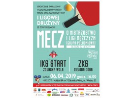 W sobotę o 16:00 tenisiści stołowi klubu IKS START Zduńska Wola zmierzą się z ZKS Zielona Góra. Będzie to ostatni mecz I ligi w sezonie 2018/2019, który odbędzie się w hali Szkoły Podstawowej nr 7 w Zduńskiej Woli.