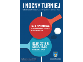 Na najbliższą sobotę (07.04) zaplanowano I Nocny Turniej w Tenisie Stołowym o Puchar Wójta Gminy Zduńska Wola. Miejscem rozgrywek będzie hala sportowa przy Szkole Podstawowej w Wojsławicach.