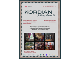 Miejska Biblioteka Publiczna im. Jerzego Szaniawskiego zaprasza do obejrzenia niepowtarzalnej wystawy fotograficznej, będącej zapisem kadrów z ekranizacji Kordiana Juliusza Słowackiego.