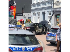 Kierowca wjechał na chodnik, potrącił pieszą i uderzył w ścianę kamienicy
