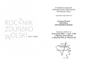 Na piątek, 28 listopada, zaplanowana została promocja nowego wydawnictwa Towarzystwa Przyjaciół Zduńskiej Woli. Zaprezentowany zostanie III. tom "Rocznika Zduńskowolskiego".