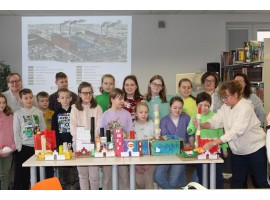 Dzisiaj w Miejskiej Bibliotece Publicznej odbyły się wykład i warsztaty plastyczne dla uczniów klasy 4 pod hasłem "Architektura fabryczna".