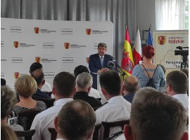 Dodatkowe pieniądze trafią do spółki PKP Cargo na budowę terminala multimodalnego w Karsznicach. Zarząd Województwa Łódzkiego zdecydował o przekazaniu na to wielomilionowe zadanie prawie 46 mln zł – o czym poinformował dzisiaj w Szadku podczas spotkania z cyklu "Porozmawiajmy w Łódzkiem" marszałek Grzegorz Schreiber.