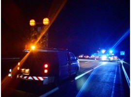Pomiędzy zduńskowolskimi węzłami drogi ekspresowej S8 doszło dziś wczesnym rankiem do kolizji trzech samochodów dostawczych. Jeden z nich przewrócił się na bok. Zdarzenie spowodowało utrudnienia w ruchu.