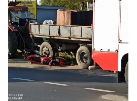 Motorowerzysta zderzył się z ciągnikiem