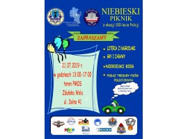 Komenda Powiatowa Policji oraz Powiatowe Centrum Pomocy Rodzinie zapraszają mieszkańców na "Niebieski Piknik" pod hasłem "Kręci mnie bezpieczeństwo w Zduńskiej Woli", który w tym roku organizowany jest z okazji 100-lecia policji. Wydarzenie w najbliższą niedzielę, 21 lipca, odbędzie się na terenie Powiatowego Międzyszkolnego Ośrodka Sportowego przy ul. Dolnej.