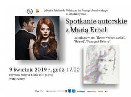 Miejska Biblioteka Publiczna w Zduńskiej Woli zaprasza na spotkanie autorskie z Marią Erbel - autorką powieści: "Macho w cieniu ducha", "Nairobi" czy "Pamiętnik Debory". Spotkanie odbędzie się w najbliższy wtorek, 9 kwietnia, w czytelni biblioteki.