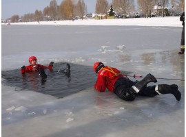 Jak udzielić komuś fachowej pomocy, gdy załamie się pod nim lód - takie jest główne założenie ćwiczeń strażaków oraz ratowników Wodnego Ochotniczego Pogotowia Ratunkowego, które dziś odbyły się na zbiorniku wodnym Kępina w Zduńskiej Woli.