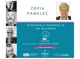 Zofia Pawelec uzyskała nominację do nagrody w Konkursie "Drzewo Pokoleń" organizowanym przez Uniwersytet Medyczny w Łodzi. Konkurs Drzewo Pokoleń jest inicjatywą mającą na celu wyłonienie oraz nagrodzenie działań zmierzających do poprawy jakości życia seniorów.