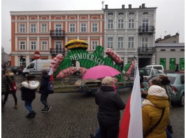 Na parkingu przed Ratuszem odbył się happening "Liść Demokracji - Gąsienice Tour 2017 PL" - międzynarodowy projekt artystyczno-satyryczny, którego celem jest walka z politycznym populizmem.