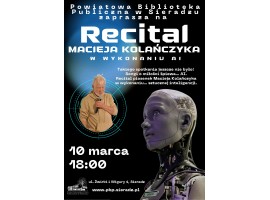 Na takie wydarzenie zaprasza jutro Powiatowa Biblioteka Publiczna w Sieradzu. W książnicy przy ul. Żwirki i Wigury o godz. 18:00 rozpocznie się recital piosenek Macieja Kolańczyka w wykonaniu... sztucznej inteligencji.