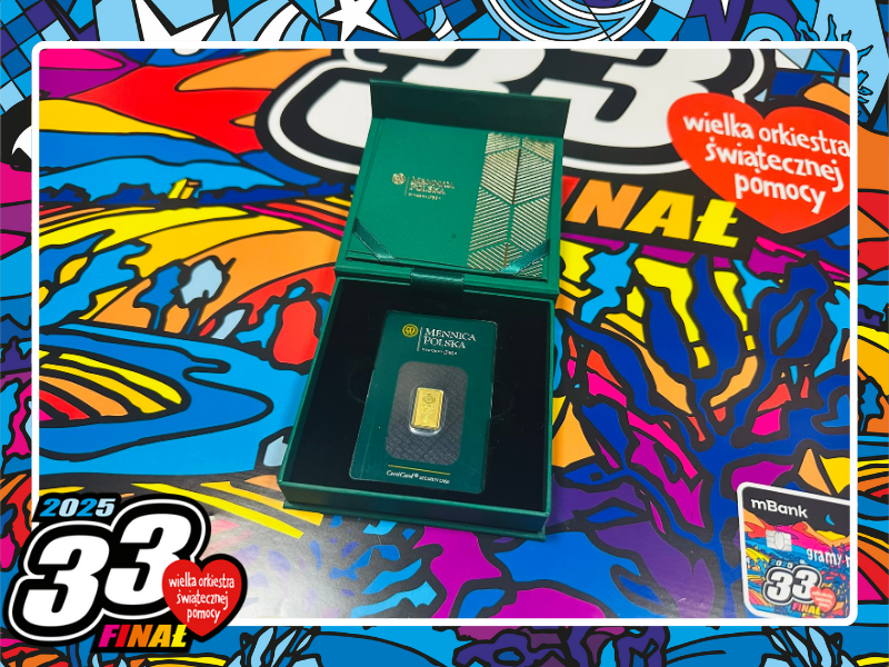 Złote Serduszko 33. Finał WOŚP 2025sprzedane Cena ostateczna: 2100 zł Wyjątkowe złote serduszko z okolicznościowym grawerem przygotowane specjalnie na 33. Finał WOŚP. To grawerowana dwustronnie złota zawieszka w kształcie serca, która doskonale oddaje charytatywny charakter aukcji WOŚP. Serduszko wyróżnia się pięknym połyskiem i unikatowym charakterem, dzięki połączeniu białego i żółtego złota na jednej stronie oraz okolicznościowemu grawerowi WOŚP 2025 na drugiej stronie. Diamentowanie nadaje mu dodatkowej elegancji i wyrafinowania. Całość została oprawiona w elegancką drewnianą ramę, która idealnie nadaje się zarówno do powieszenia na ścianie, jak i postawienia w widocznym miejscu. Dla osoby lub firmy, która wylicytuje serduszko, stanie się ono nie tylko piękną ozdobą, ale także symbolem zaangażowania i wsparcia niesienia pomocy. Przekazuje:Pracownia Złotniczo-Julbilerska M.J.Świniarscy |