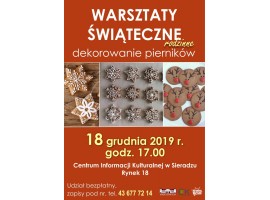 Centrum Informacji Kulturalnej w Sieradzu zaprasza na rodzinne warsztaty z dekorowania pierników. To idealna okazja, żeby wspólnie przygotować się na nadchodzące święta. Zajęcia odbędą się jutro o 17, są jeszcze wolne miejsca.
