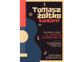Dom Kultury "Lokator" w Zduńskiej Woli zaprasza dzisiaj na koncert Tomasza Żółtko - muzyka, kompozytora, poety i publicysty. Wiele z jego piosenek zmusza do refleksji, głębszego spojrzenia na siebie i otaczającej nas rzeczywistości.