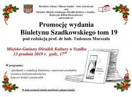 W najbliższy piątek, 13 grudnia, w Miejsko-Gminnym Ośrodku Kultury w Szadku odbędzie się promocja 19 tomu Biuletynu Szadkowskiego. W tym roku wydawnictwo powstało pod redakcją prof. dr. hab. Tadeusza Marszała.