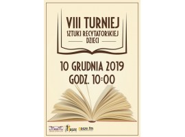Sieradzkie Centrum Kultury organizuje w tym roku ósmą edycję Turnieju Sztuki Recytatorskiej Dzieci. Konkurs odbędzie się w Teatrze Miejskim 10 grudnia. Jest adresowany do uczniów klas I - IV ze szkół podstawowych z terenu Sieradza.