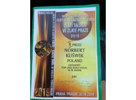 Wczoraj zakończył się XI International Festival of Young Talents - "Golden Talents In Golden Prague 2019" w Pradze. Spośród wielu młodych wykonawców reprezentant Powiatowego Centrum Kultury, Sportu i Rekreacji - Norbert Kuświk został zauważony i doceniony przez międzynarodowe jury.