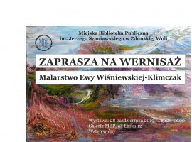 Miejska Biblioteka Publiczna im. Jerzego Szaniawskiego zaprasza na wernisaż malarstwa Ewy Wiśniewskiej Klimczak.To w najbliższy poniedziałek, 28 października.