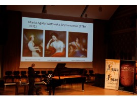 Sławomir Dobrzański wygłosił wczoraj w szkole muzycznej w Sieradzu wykład dotyczący życia i twórczości Marii Szymanowskiej. Wieczorem w pałacu w Małkowie profesor dał koncert, na który składały się utwory Marii Szymanowskiej i drugiego, znakomitego, dziewiętnastowiecznego pianisty i kompozytora Antoniego Kątskiego.
