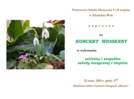 Państwowa Szkoła Muzyczna w Zduńskiej Woli zaprasza na Koncert Wiosenny. Wydarzenie jutro, 22 maja, odbędzie się w Zduńskowolskim Centrum Integracji – Ratusz.