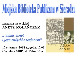 O poecie i jego związkach z regionem opowie Aneta Kolańczyk ze Stowarzyszenia Promocji Kultury "Łyżka Mleka". Jutrzejsze spotkanie rozpocznie się o godz. 17 w czytelni Miejskiej Biblioteki Publicznej w Sieradzu, która znajduje się parku Broniewskiego.