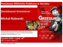Powiatowa Biblioteka Publiczna w Sieradzu zaprasza w środę 5 grudnia na spotkanie poświęcone Stanisławowi Grzesiukowi. W książnicy zostanie zaprezentowany film dokumentalny "Grzesiuk: ferajna wciąż gra" w reżyserii Jarosława Wiśniewskiego.