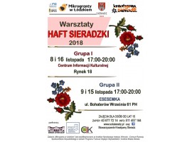 Stowarzyszenie Kreatywny Sieradz zaprasza na Warsztaty Haftu Sieradzkiego organizowane w ramach programu „Mikrogranty w Łódzkiem”. Warsztaty przeznaczone są dla mieszkańców miasta Sieradz, którzy ukończyli minimum 15 lat. Trwają zapisy.