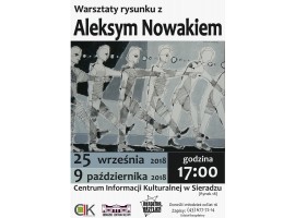 Dziś w Centrum Informacji Kulturalnej w Sieradzu odbędą się warsztaty rysunku ze znanym artystą Aleksym Nowakiem. Zajęcia przeznaczone są dla osób powyżej 16 roku życia.
