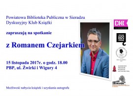 Znany dziennikarz odwiedzi Sieradz na zaproszenie Dyskusyjnego Klubu Książki i Powiatowej Biblioteki Publicznej w Sieradzu (u. Żwirki i Wigury 4). Spotkanie z Romanem Czejarkiem zaplanowano na środę ( 15 listopada) na godz. 18:00.