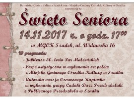 Na jutro (14.11) w Miejsko-Gminnym Ośrodku Kultury w Szadku zaplanowano obchody Święta Seniora, które połączone będą z uroczystością Złotych Godów - jubileuszem 50-lecia par małżeńskich z terenu gminy i miasta Szadek.