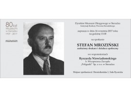 W Muzeum Okręgowym w Sieradzu w czwartek (14 września) odbędzie się spotkanie poświęcone Stefanowi Mrozińskiemu. Zaplanowano je w budynku przy ul. Dominikańskiej 2 na godz. 13:00, wstęp wolny.