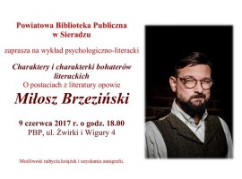 Trener personalny, wykładowca akademicki, autor książek poświęconych efektywności osobistej i rozumieniu zjawisk psychologicznych, czyli Miłosz Brzeziński, który w najbliższy piątek (9.06) zagości w Powiatowej Bibliotece Publicznej w Sieradzu. "Charaktery i charakterki bohaterów literackich" to tytuł wykładu, który wygłosi dla sieradzkiej publiczności.