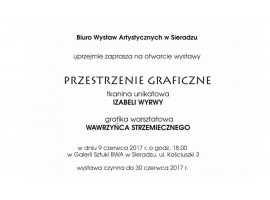 W piątek (9.06) w Biurze Wystaw Artystycznych w Sieradzu otwarcie wystawy "Przestrzenie graficzne" autorstwa Izabeli Wyrwy i Wawrzyńca Strzemiecznego. Początek o godzinie 18.