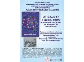 Małgorzata Skwarek - Gałęska to poetka z Łodzi, która w ostatnim czasie wydała tomik pt: "Rzeczywistość". Swoje najnowsze wiersze zaprezentuje w zduńskowolskim Ratuszu.