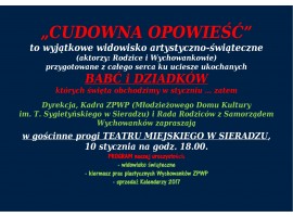 "Cudowna opowieść" to tytuł widowiska taneczno-teatralnego przygotowanego przez Zespół Placówek Wychowania Pozaszkolnego w Sieradzu. Spektakl będzie wystawiony w sieradzkim Teatrze Miejskim 10 stycznia.