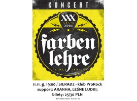 W najbliższy piątek (11 listopada) zespół zagra w sieradzkim klubie Prorock. W tym roku Farben Lehre obchodzi 30-lecie działalności, są autorami takich utworów jak: "Wiosna", "Spodnie z GS-u", "Kolory" czy "Matura".
