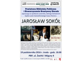 Spotkanie autorskie z Jarosławem Sokołem zaplanowano na jutro ( środa 19 października) na godz.18:00 w bibliotece przy ul. Żwirki i Wigury 4 w Sieradzu.