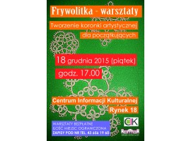 Centrum Informacji Kulturalnej w Sieradzu zaprasza w piątek 18 grudnia na spotkanie podczas, którego będzie można nauczyć się robić frywolitki.