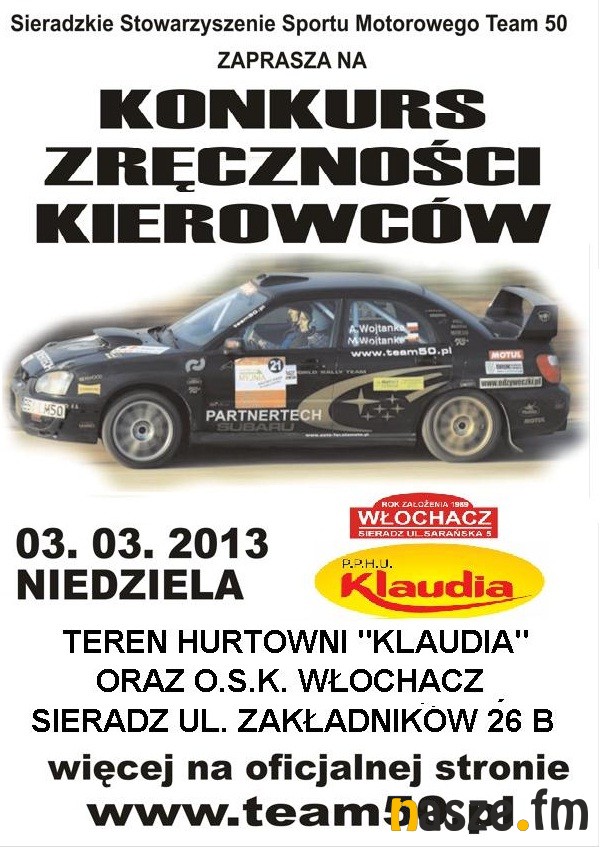 Sieradzkie Stowarzyszenie Sportu Motorowego Team50 idzie za ciosem. Po niedzielnym Rally Sprincie pora na Konkurs Zręczności Kierowców.